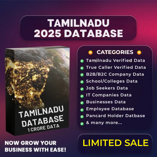 Access one of the largest and most reliable business & consumer databases in India over 1 crore verified contacts. This database is designed to help businesses connect with the right audience, generate quality leads, and boost sales quickly.